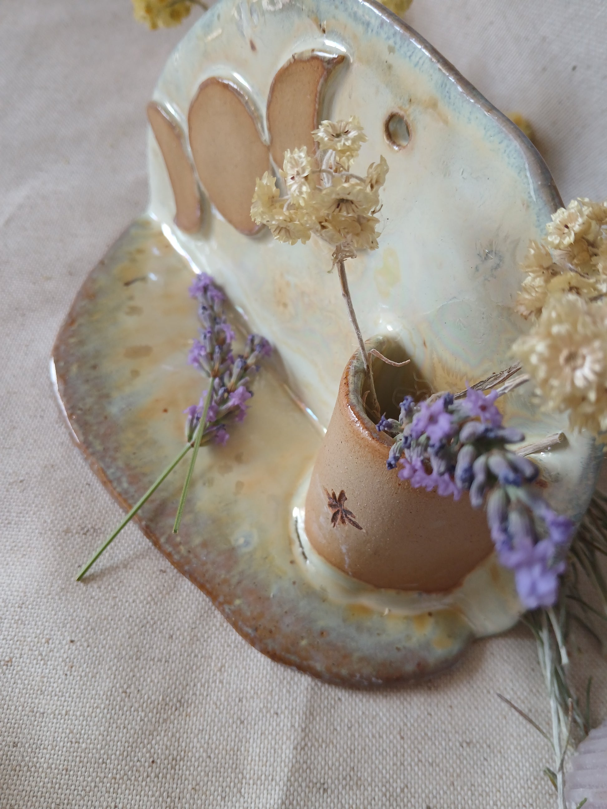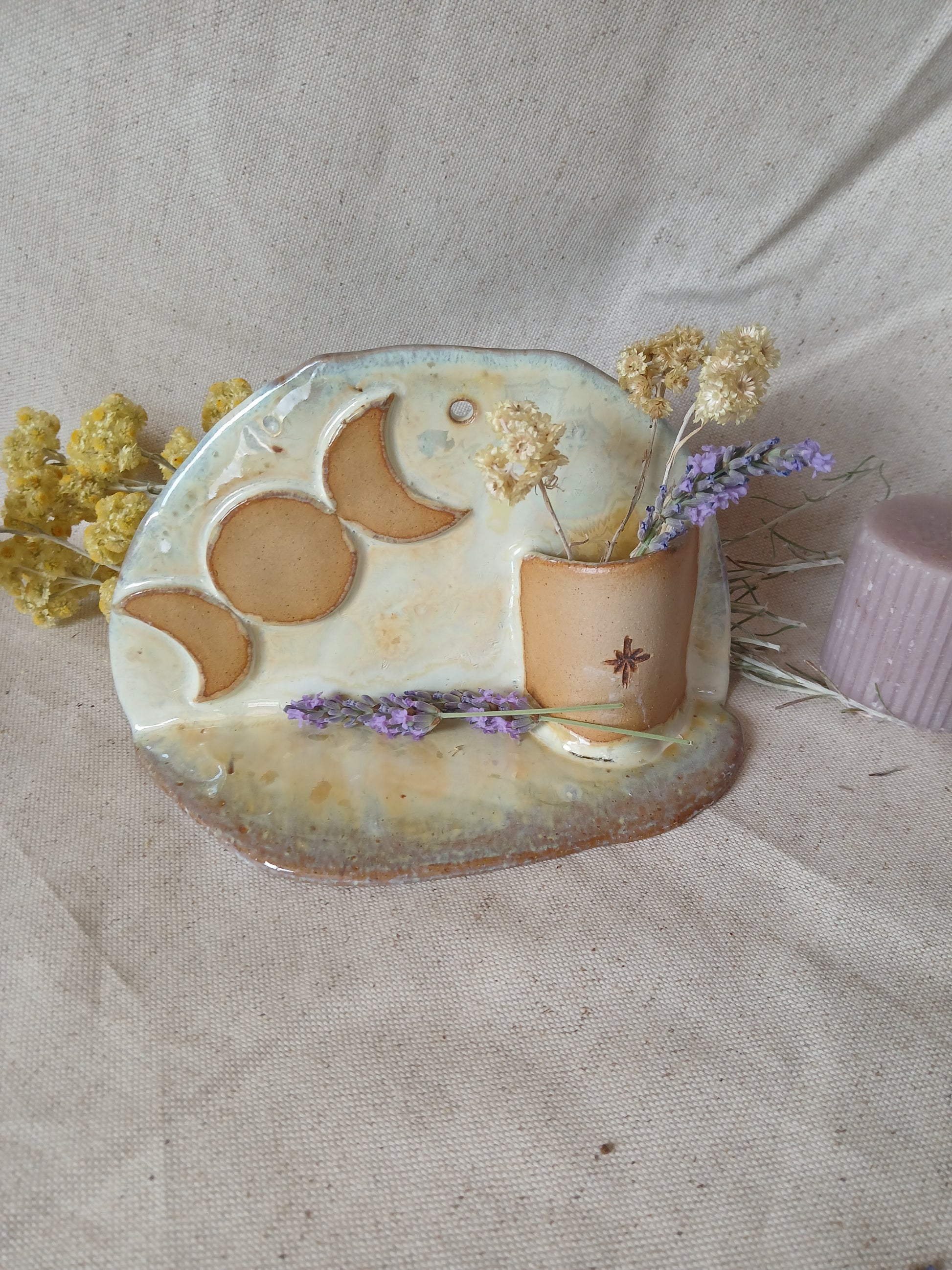 Véritable pièce décorative, cet autel mural invite à la contemplation. On peut y glisser un petit bouquet de fleurs séchées, y déposer une bougie ou nos petits trésors. Une pièce empreinte de douceur, idéale pour créer un coin sacré dans son intérieur.
