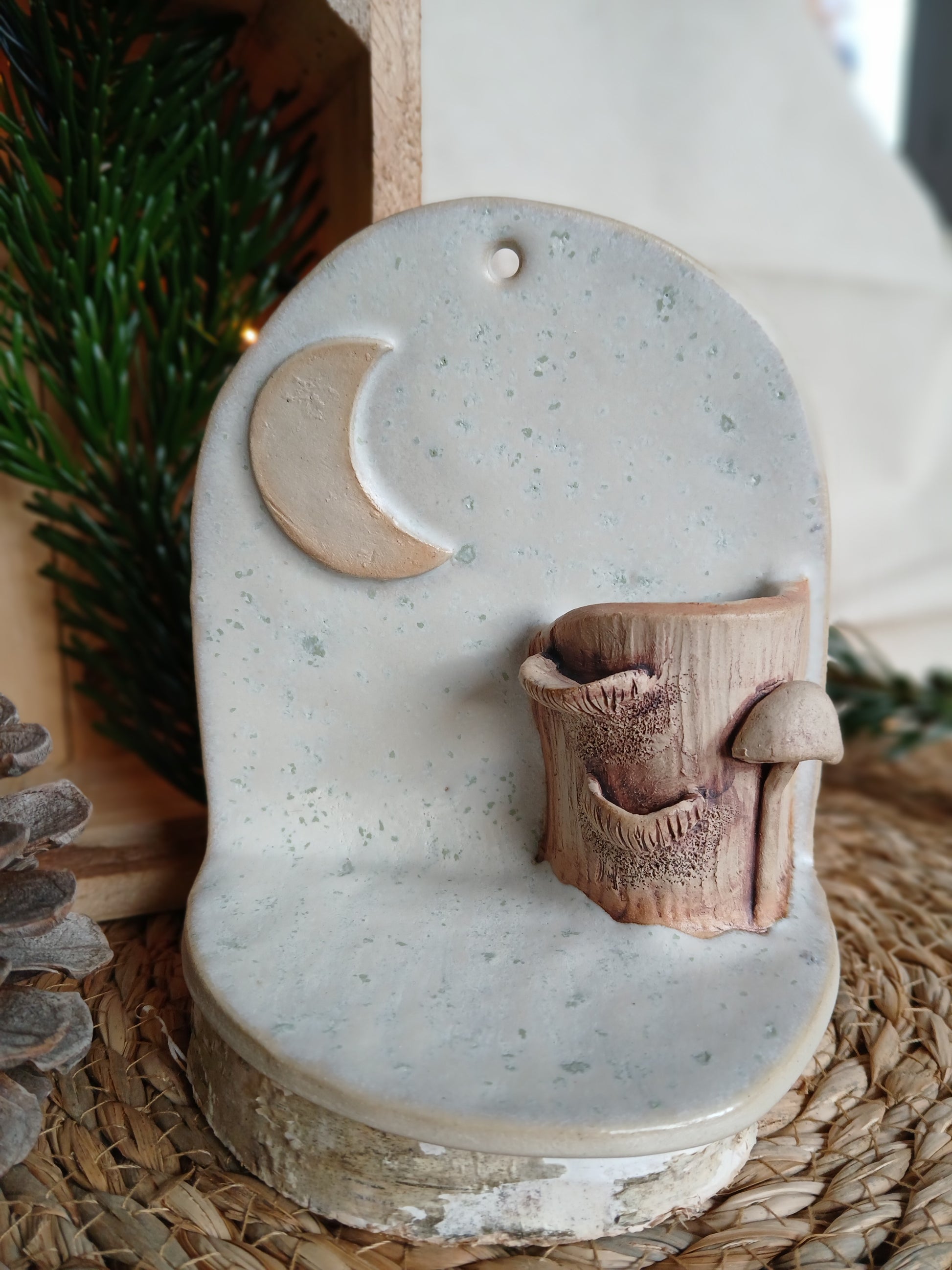 Véritable pièce décorative, cet autel mural invite à la contemplation. On peut y glisser un petit bouquet de fleurs séchées, y déposer une bougie ou nos petits trésors. Une pièce empreinte de douceur, idéale pour créer un coin sacré dans son intérieur.