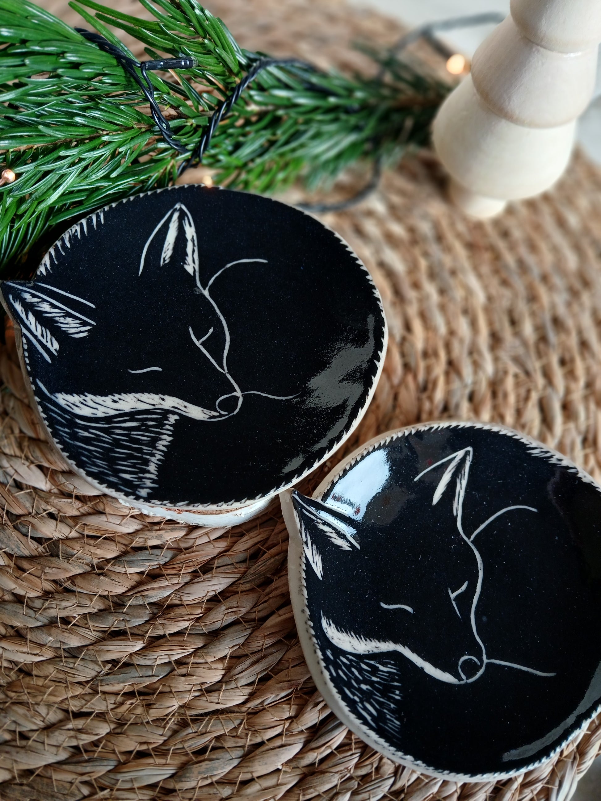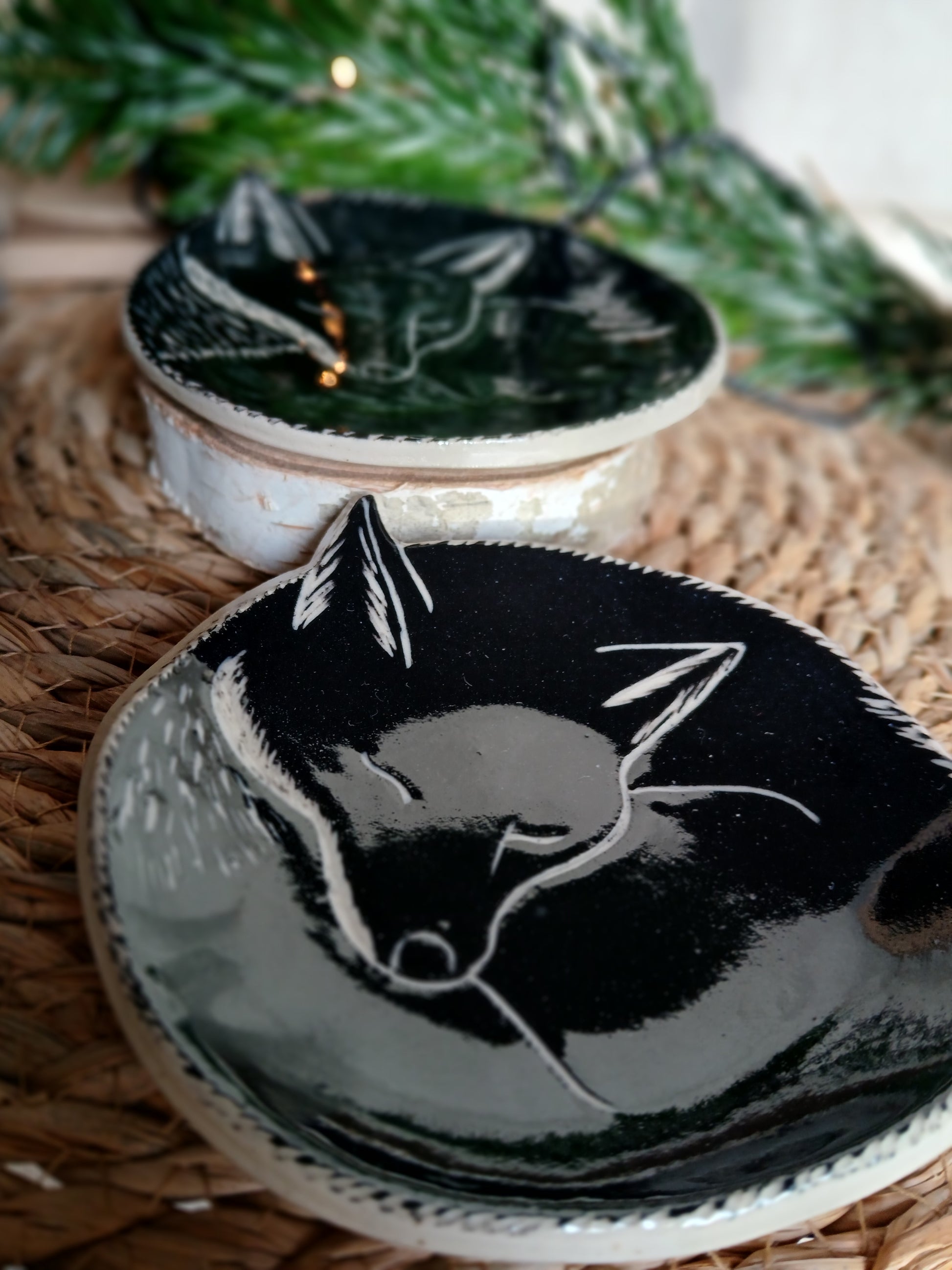 Coupelle au décor gravé d'un esprit renard endormi.