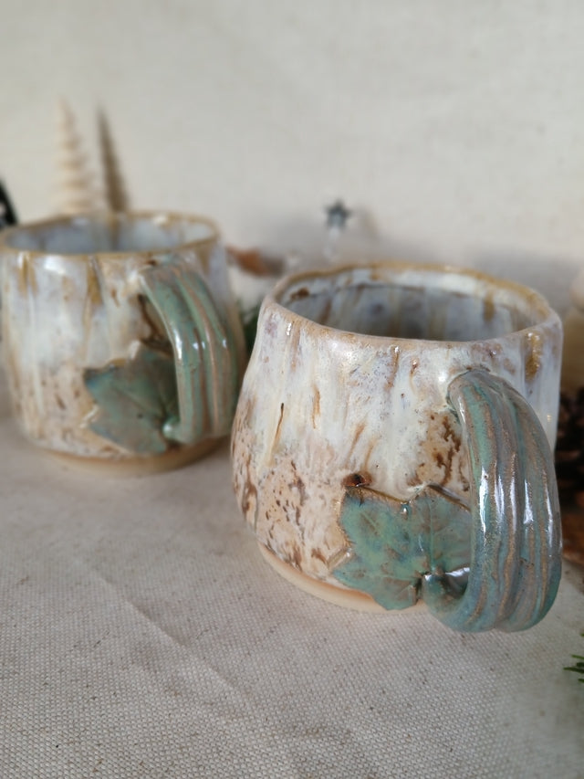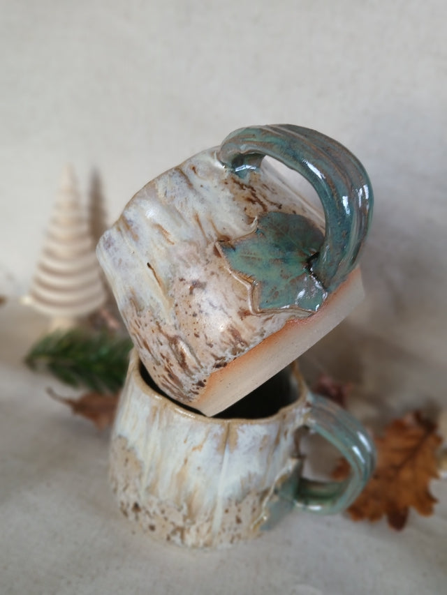 Tout en rondeur, ce mug citrouille évoquent les douces récoltes d'automne. Son anse texturée est ornée d'une feuille naturelle, pressée dans l'argile pour en révéler chaque détail, comme si elle venait d'être cueillie.