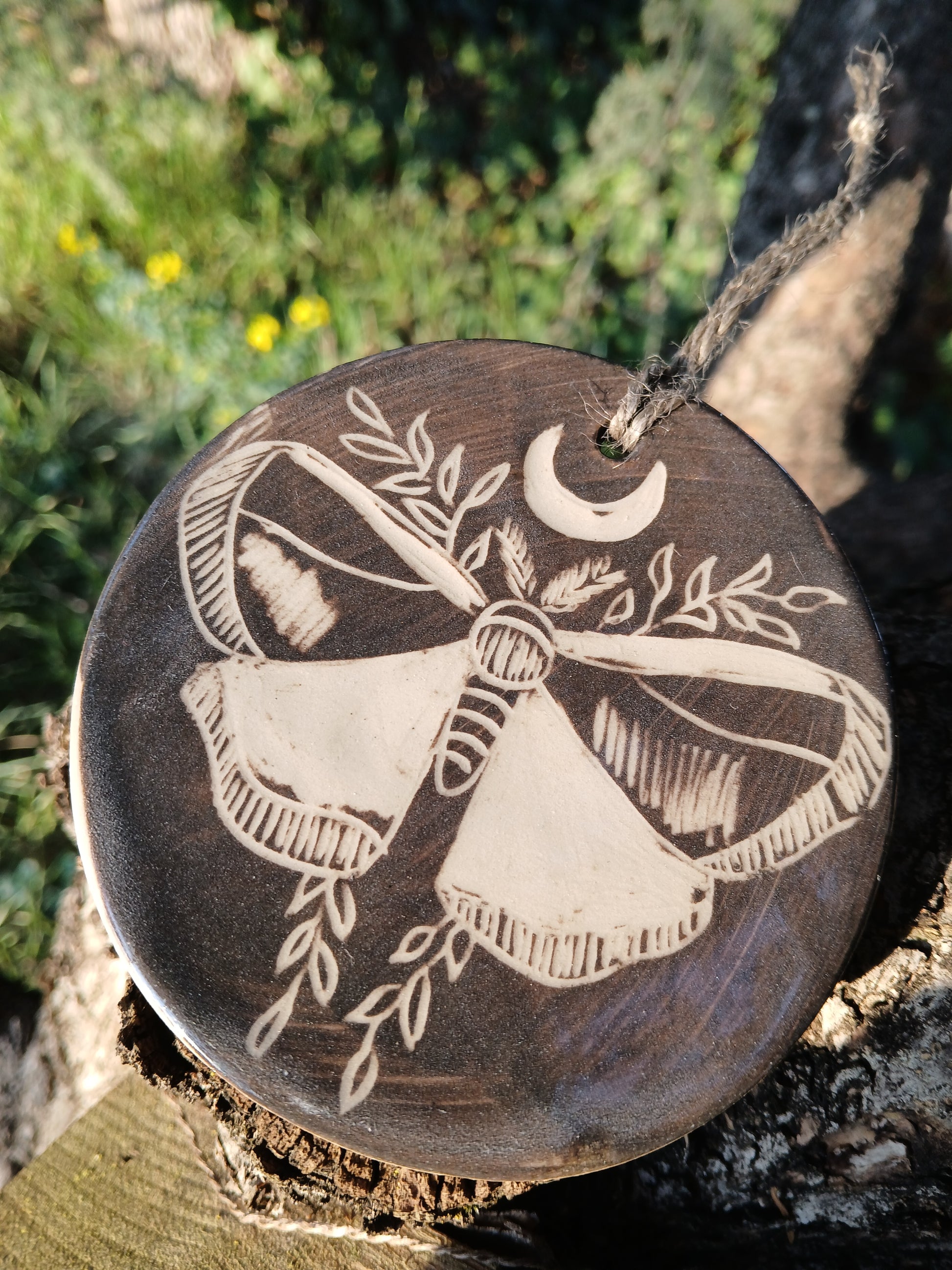 Invitez la magie dans votre intérieur avec cette décoration en céramique, patiemment gravée avec intention. Un talisman unique qui veillera sur vos rituels et sublimera votre chaumière.
