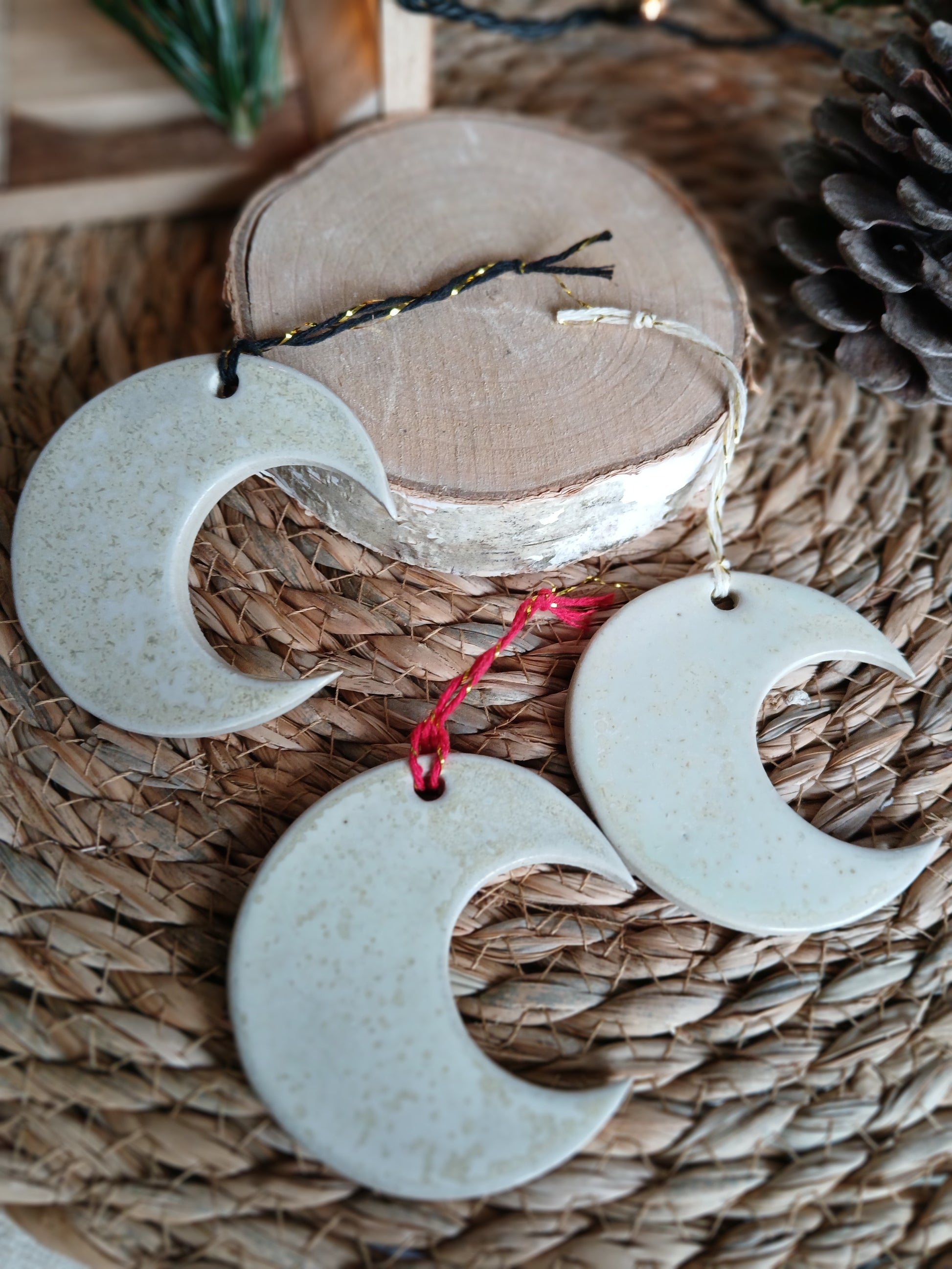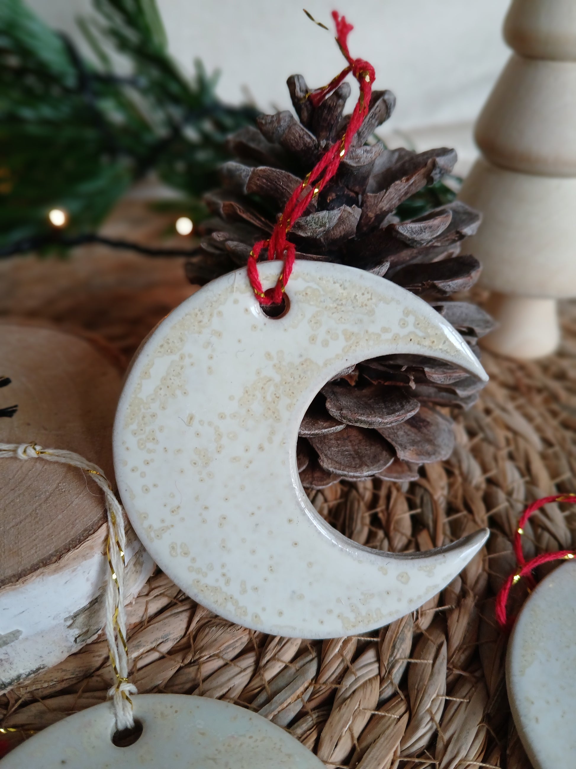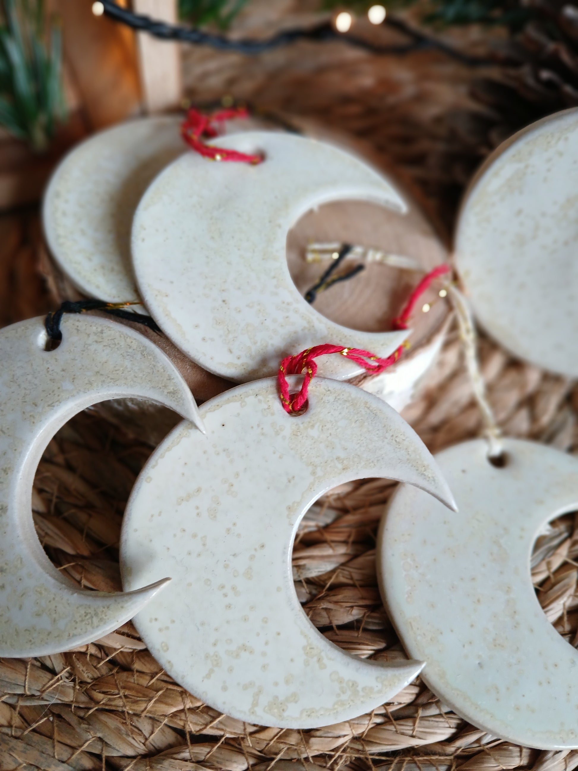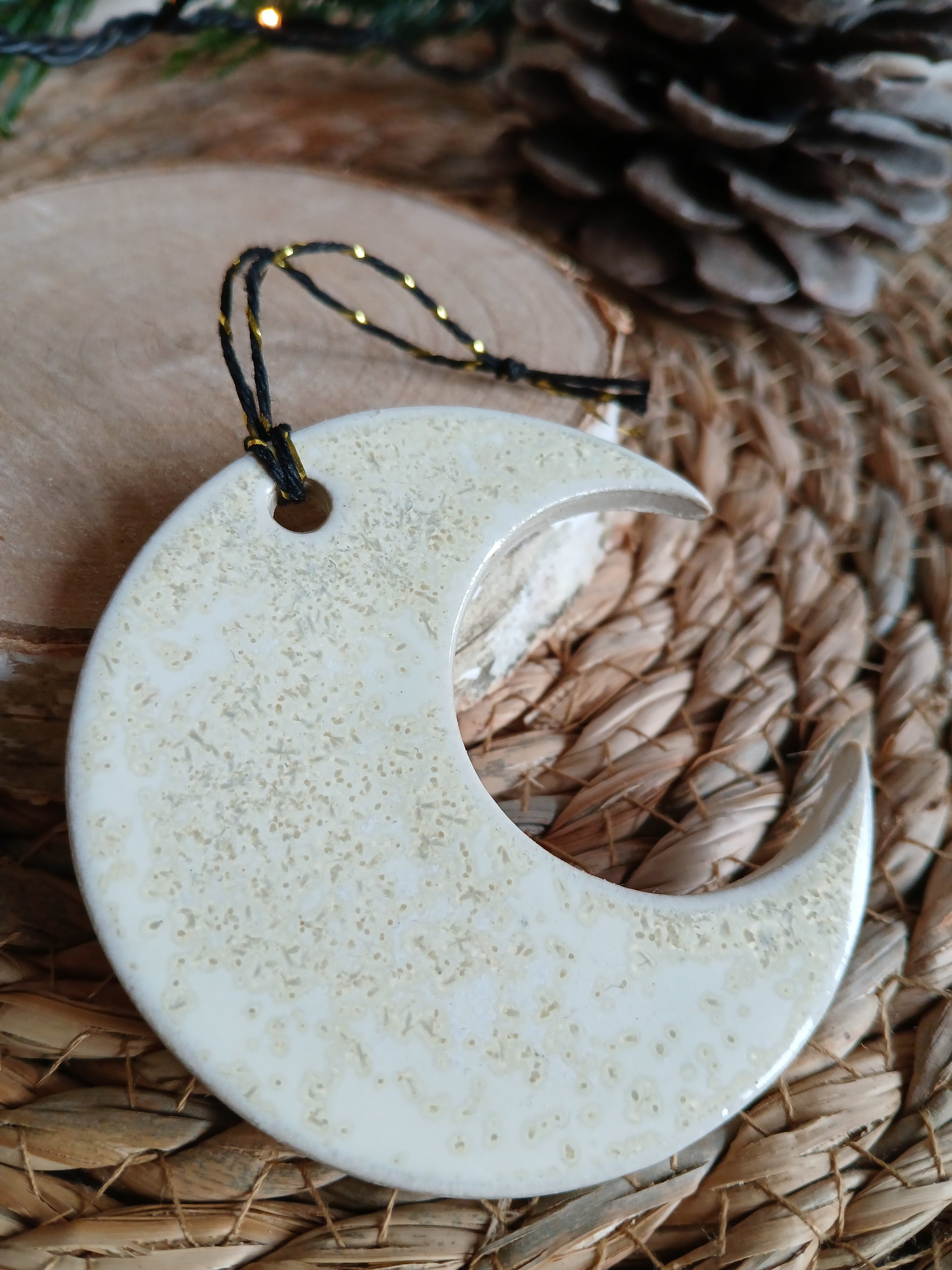 Décoration à suspendre en forme de lune.